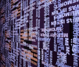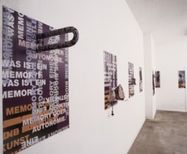 Unser Galerist Hans Sworowski eröffnete Olaf und mir – trotz anfänglicher Bedenken, ob wir eigentlich schon beim Grafikdesign angelangt wären – 1993 die Möglichkeit, in seinen Frankfurter Räumen eine typografische Camouflage an die Wand zu bringen, in der sich alltägliche Gebrauchsobjekte auflösten. Den Hintergrund bildet ein Manifest aus Fragen wie: Memory eine Dienstleistung? Das Verschwinden der Dinge in einem nur scheinbar deterministisch geprägten digitalem Weltbild klopfte hier an die Tür unserer Zusammenarbeit.