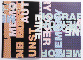Unser Galerist Hans Sworowski eröffnete Olaf und mir – trotz ziemlicher Bedenken, ob wir eigentlich schon beim Grafikdesign angelangt wären – 1993 die Möglichkeit, in seinen Frankfurter Räumen eine typografische Camouflage an die Wand zu bringen, in der sich alltägliche Gebrauchsobjekte auflösten. Den Hintergrund bildet ein Manifest aus Fragen wie: Memory eine Dienstleistung? Das Verschwinden der Dinge in einem nur scheinbar deterministisch geprägten digitalem Weltbild klopfte hier an die Tür unserer Zusammenarbeit.