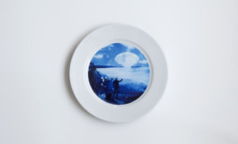 The wall plate, in intimate harmony with angels, macramé constructs and straw flower arrangements, was the peak of creativity in the idyllic terraced houses of the 70s and 80s. That HLZ has made the world happy with a series of wall plates is certainly due to the DNA of the three founders. A current theme is always placed on the porcelain plate. Anyone who thinks in the case of the blue plate that Fukushima was the godfather of its content is mistaken. The Japanese nuclear accident took place two years later. Nevertheless, a kind of dystopia of the traditional graphic world, which makes the classic designer pack his bags, can be recognized. This is no different with the interpretation of brand omnipotence, which is hidden in the ornament-camouflage-like design. The fact that the dissolution of the private sphere into alchemical data-gold is at home on the last plate of the series now appears as hors d'œuvre of omnipotent octopuses in the nebulous environment of data clouds that control themselves.